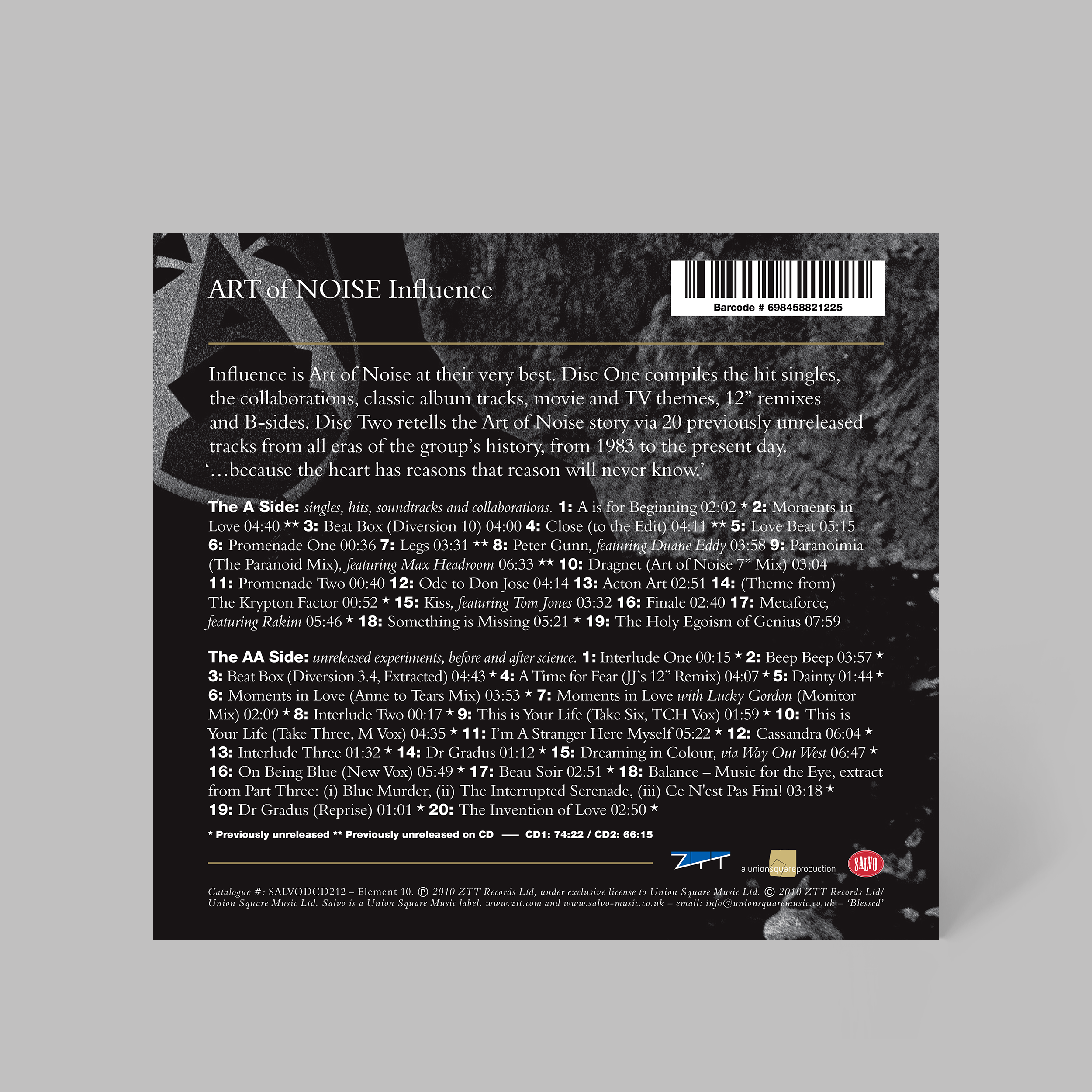 Ian and I have also collaborated on deluxe editions of Art of Noise’s studio albums: ‘Into Battle with the Art of Noise’, ‘Who’s Afraid of the Art of Noise’, ‘Invisible Silence’ and ‘In No Sense? Nonsense!’. ‘Influence’ was followed by a 2015 compilation of unreleased works from the group’s late 90s reboot, ‘At the End of the Century’.