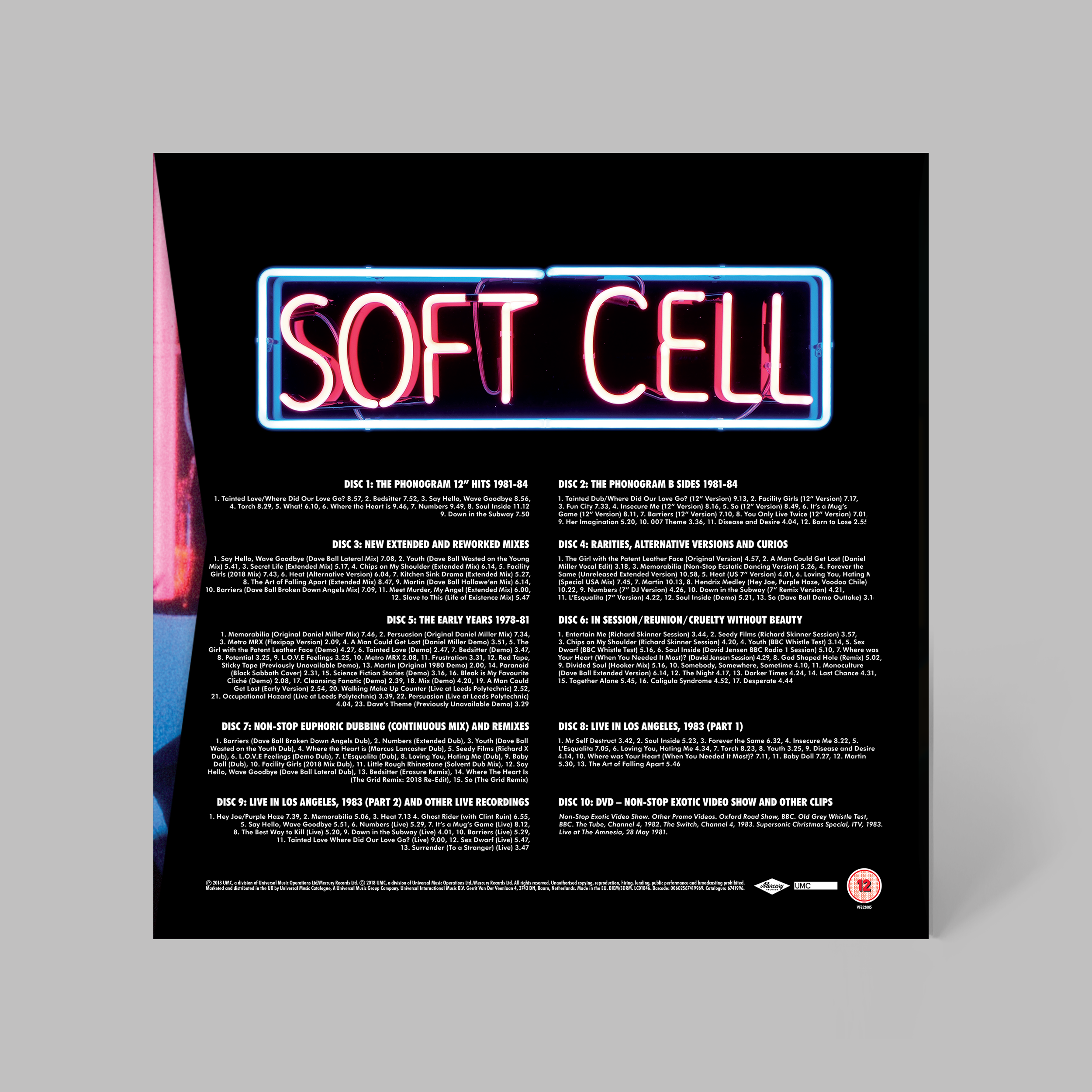 ‘Keychains and Snowstorms – The Soft Cell Story’ is a comprehensive 10 disc box set telling the definitive story of one of electronic music’s most thrilling and pioneering acts. With over 50% previously unreleased material it is a genuine treasure trove of art-school experimentation, huge pop hits, ground-breaking club tracks and piercing introspection straight out of bedsit land. Each and every track from their main Phonogram era of 1980-1984 is represented on this collection.