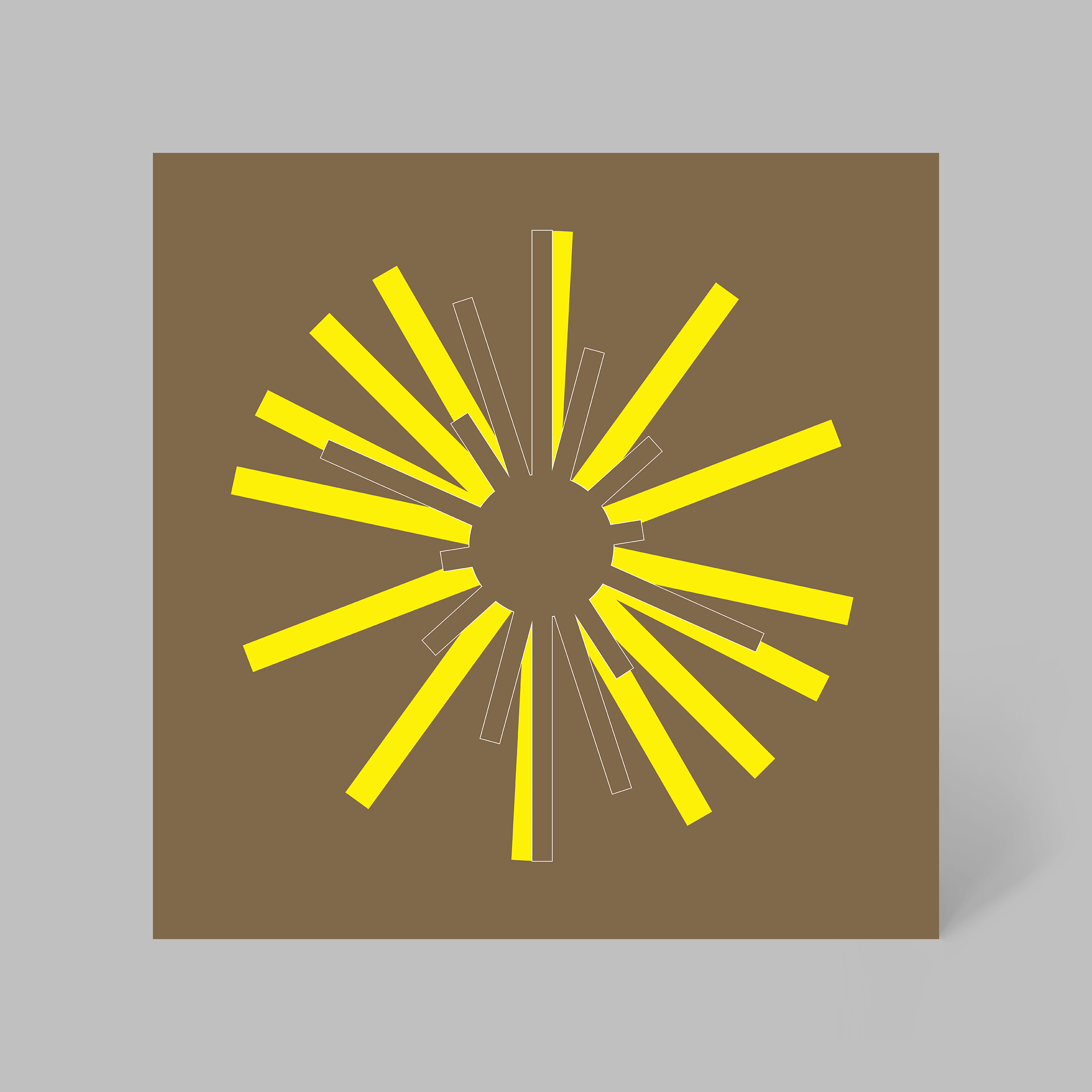 I restricted the palette to a metallic bronze and solid yellow, referencing the album’s solar imagery and metallurgic titles.