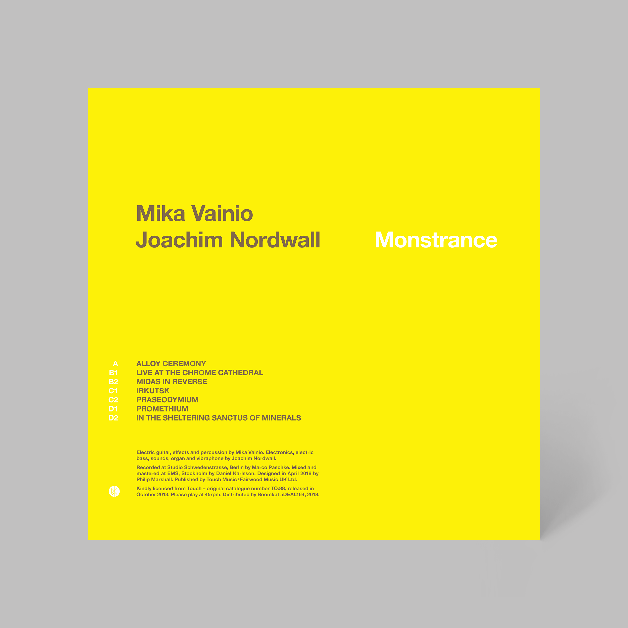 ‘Monstrance’, a collaboration between Mika Vainio and Joachim Nordwall, was originally released on CD by Touch in 2013. For its 2018 2x12” vinyl reissue, Joachim approached me to create new cover artwork.